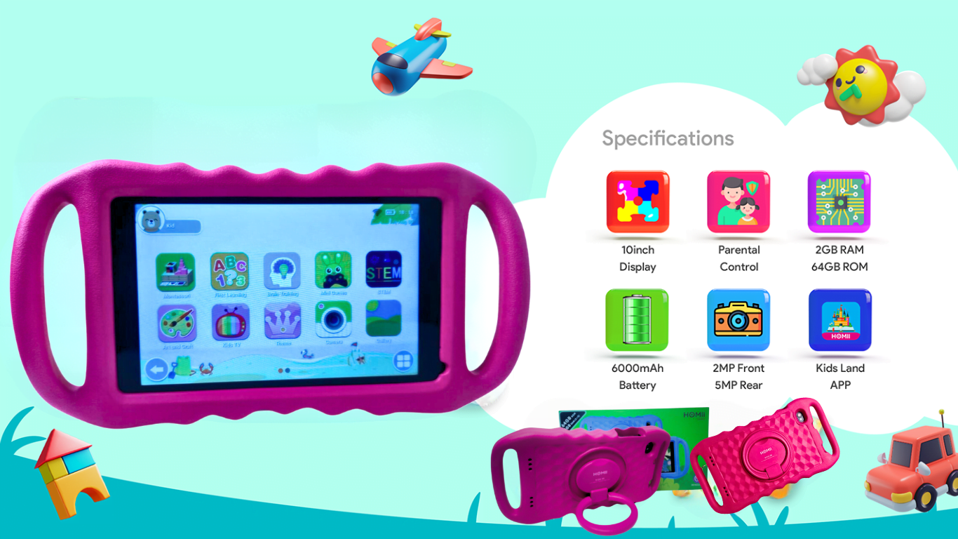 Unleash your child's curiosity with the Homii Kids Tablet. Learn, explore, and express through: